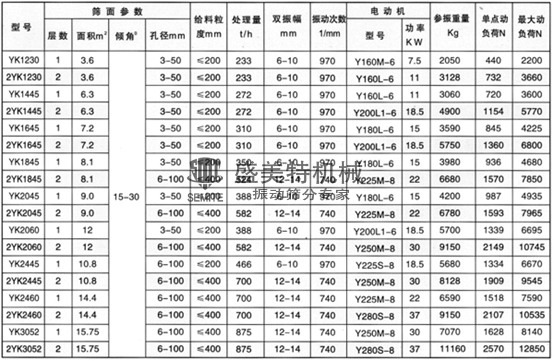 YK圓振動(dòng)篩技術(shù)參數(shù):